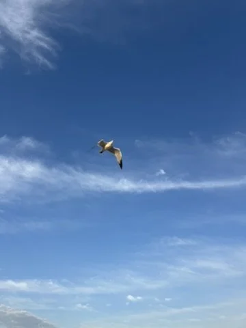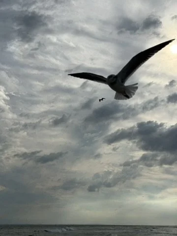 Sometimes I bring them bread, and they all go crazy over it. It is such a joy to see them flying in the wind, with the sound of breaking waves.